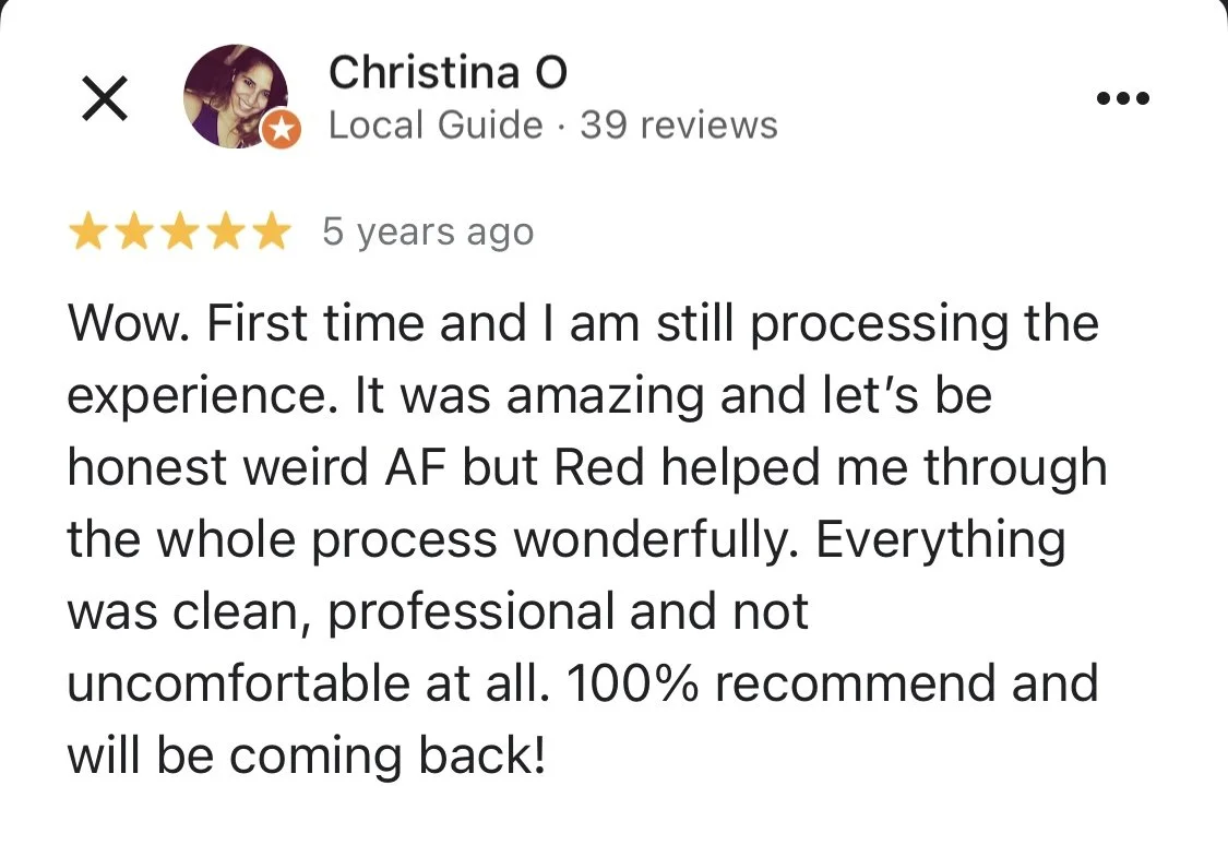 “a colonic can be a bit stressful - you have to be comfortable with a certain level of exposure, literally. you want someone you not only trust but makes you feel entirely at ease while also 100% professional. that's Red.”
